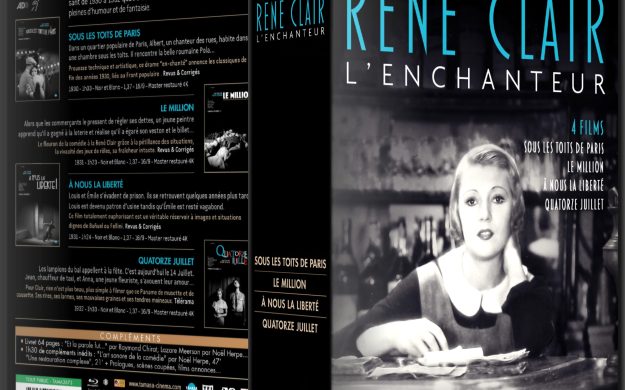 René Clair l’Enchanteur : coffret de quatre films en combo Digipack DVD/Blu-ray + livret de 64 pages sorti par Tamasa le 24 octobre 2023.