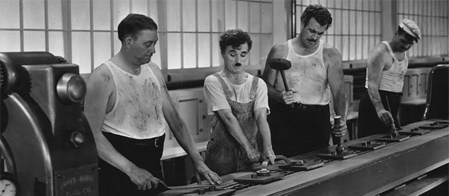 Clair et Chaplin se retrouvent aussi dans la dénonciation du taylorisme. À nous la liberté s’ouvre sur des prisonniers qui fabriquent des jouets puis passent au réfectoire. Dans les plans suivants, on verra des ouvriers sur des chaînes de montage et dans leur cantine soumis au même régime de surveillance, à la même monotonie de toujours faire le même geste. Dans les décors épurés et géométriques de Meerson, le film semble s’éloigner du réalisme pour se rapprocher d’une sorte de cauchemar éveillé.