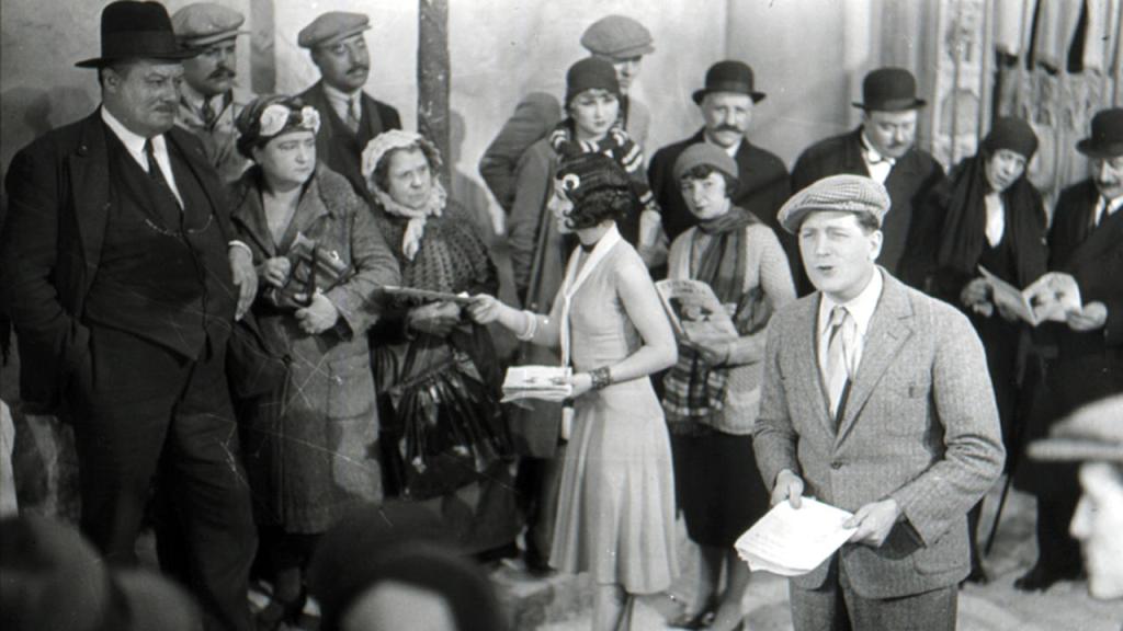 René Clair, on l’a dit, se méfie du cinéma qui parle comme l’on parle au théâtre. Il préfère ainsi filmer la séquence entre les deux amis — Préjean et le futur réalisateur Edmond T. Gréville dont la femme, Vanda, apparaît dans Le Million — qui se disputent Pola Illéry derrière la vitrine d’un bistrot. Rien n’a besoin d’être dit. On comprend par les gestes et les regards. Parole qui est souvent bannie par une interjection. « Taisez-vous ! », intime ainsi à deux détenus qui veulent causer le gardien de prison d’À nous la liberté. Et dans Le Million, alors que René Lefèvre et Annabella se retrouvent sur une scène de théâtre où ils n’ont rien à faire et doivent se cacher derrière des éléments de décor, le régisseur leur fait signe de se taire.