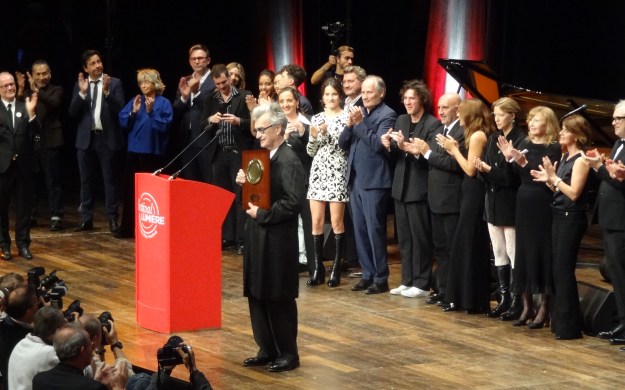 Le festival Lumière, qui s’est déroulé à Lyon du 14 au 22 octobre, a atteint son climax vendredi soir. Ce 20 octobre, le cinéaste allemand Wim Wenders a reçu le prix Lumière en présence de nombreux invités dont le prix Nobel de littérature Peter Handke — qui joua un air d’harmonica — et son acteur fétiche Rüdiger Vogler.