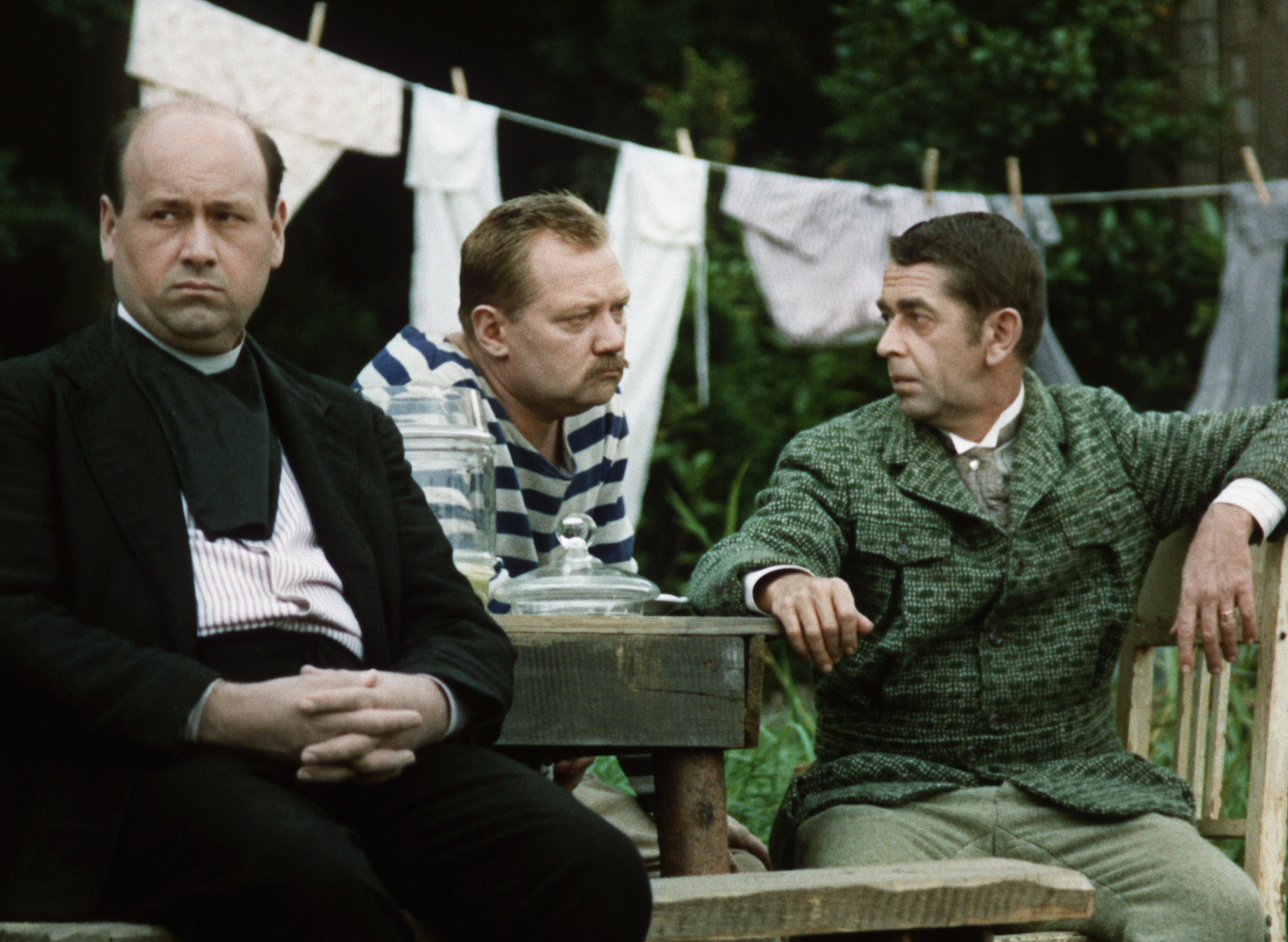 Le quotidien quelque peu monotone, rythmé par les changements pluviométriques de l’été et les conversations philosophiques, va soudain se trouver bousculé par l’arrivée d’un magicien (Jiří Menzel) et de la délicieuse Anna (Jana Preissová). Une jolie fille que chacun des trois copains va se mettre en tête de conquérir. Par une jolie pirouette, Menzel signifie qu’on a tort d’espérer sortir d’une quiétude agréable. Signé par Menzel et Václav Nývlt, le scénario est tiré d’un court roman de Vladislav Vančura dont on apprend (merci wikipedia) que « le véritable héros en est la langue qui mêle archaïsmes et prosaïsmes ». Vancura est également l’auteur de Marketa Lazarová, adapté à l’écran en 1967 par František Vláčil — un film qu’Artus Films vient d’éditer en DVD/Blu-ray.