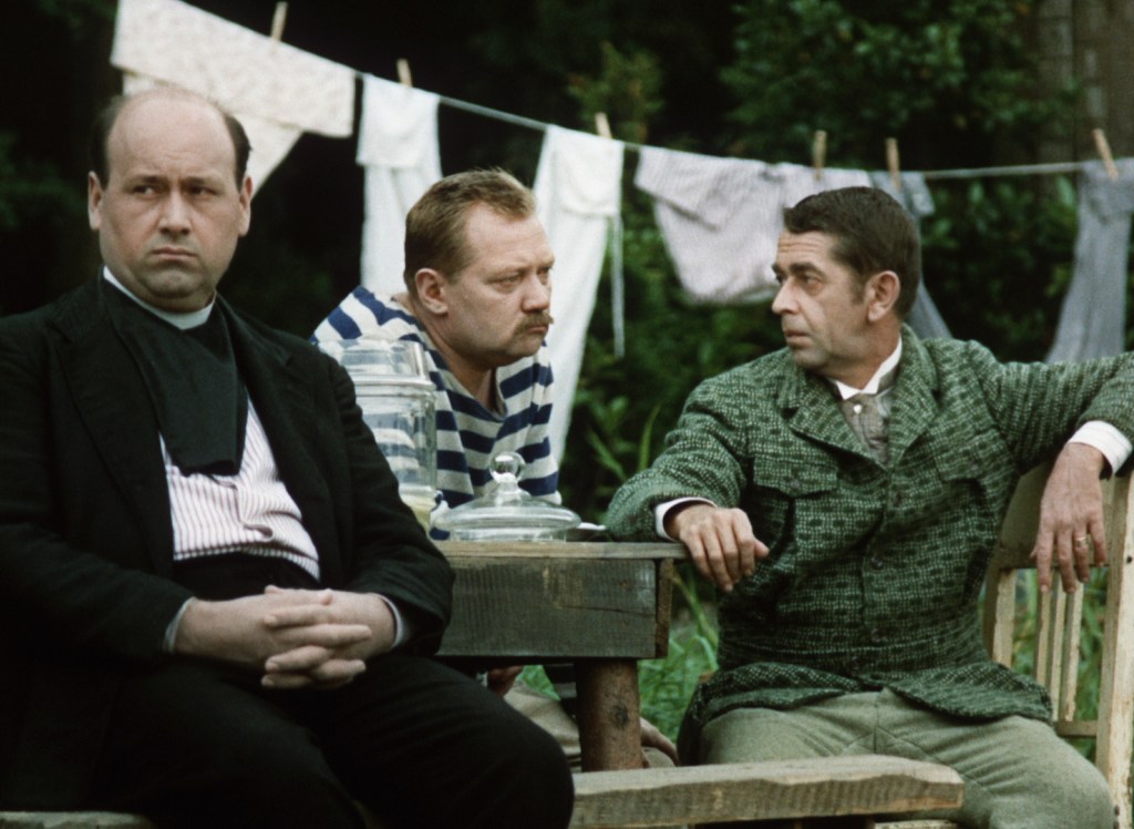 Menzel ouvre Un été capricieux, son troisième film, sur trois copains, Antonin (Rudolf Hrušínský), le Major (Vlastimil Brodský) et l’Abbé (Frantisek Rehák) qui passent leur temps à picoler et se baigner dans la rivière qui borde le cabanon d’Antonin et sa femme (Míla Myslíková). Soleil et pluie jouent à cache-cache, d’où le titre moqueur du film qui prouvera que le destin est tout autant versatile que la météo.