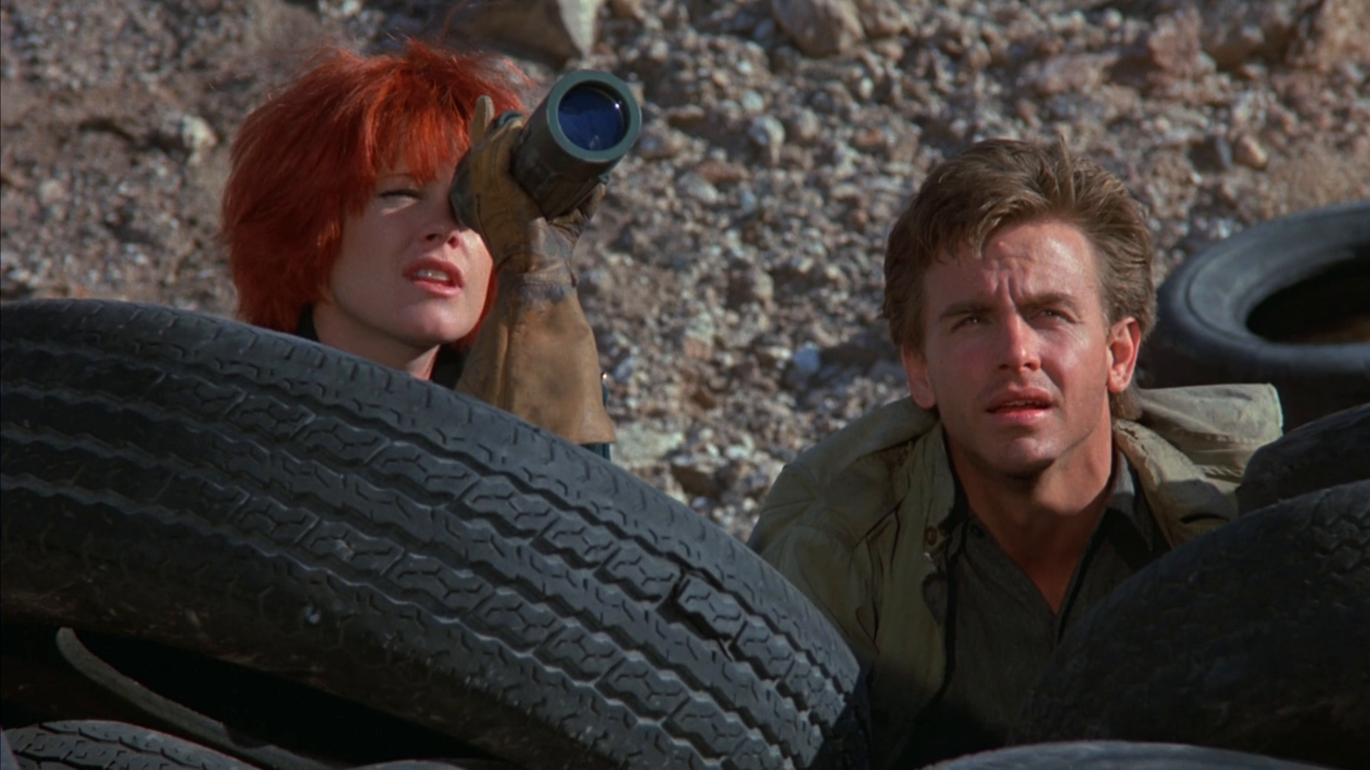 Cherry 2000 nous offre un bel éventail de genres : le film parle d’un futur où l’on peut faire l’amour à des robots. Mais c’est aussi une comédie romantique avec un héros (David Andrews) qui, parce que le robot (Pamela Gidley) dont il est fou amoureux est tombé en rade, va tout faire pour récupérer un modèle semblable. Sauf que ceux-ci se trouvent désormais relégués dans un cimetière pour robots situé dans une zone interdite et qu’il va falloir, pour l’atteindre, louer les services d’un traceur.