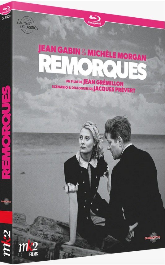 Revoir aujourd’hui Remorques (1941), le film de Jean Grémillon que Carlotta ressort pour la première fois en Blu-ray, nous replonge dans ce qu’avait de meilleur le cinéma français de cette époque. Outre le nom de Grémillon à la réalisation, apparaissent aussi au générique ceux de Jean Gabin, Michèle Morgan et Madeleine Renaud pour l’interprétation — mais il faudrait citer également Fernand Ledoux et les Marseillais Charles Blavette et Henri Poupon, alors que l’action se déroule à Brest — et celui de Jacques Prévert pour les dialogues, pour un scénario sur lequel ont travaillé Charles Spaak et André Cayatte. Si l’on ajoute encore ceux d’Alexandre Trauner pour les décors, Armand Thirard pour la photo et Roland-Manuel pour la musique, la qualité ne peut être qu’au rendez-vous.