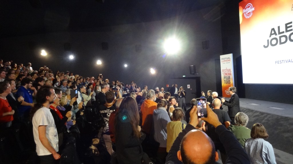 Programmée dans le cadre du festival Lumière, à Lyon, ce 19 octobre, la rencontre était animée par Philippe Rouyer, le critique de Positif, du Cercle et de Mauvais Genres. Secondée par son épouse, la plasticienne Pascale Montandon — tous deux créent à présent sous l’acronyme-valise de PascALEjandro —, Jodorowsky a promené son auditoire sur les sommets ardus de ses théories. « Dans la planète où nous vivons, tout est matière ! La conscience se promène et est la voix de la matière. Le cinéma, tel qu’il s’est fait pendant des années, était à la recherche de la réalité. Mais il n’était qu’une copie de la réalité, un mensonge. La réalité, c’est l’esprit ! C’est différent ! Mon cinéma ne veut pas montrer la réalité mais l’esprit. On s’attend à ce que l’esprit se présente de façon indicible. Mais nous confondons l’esprit et la conscience. »