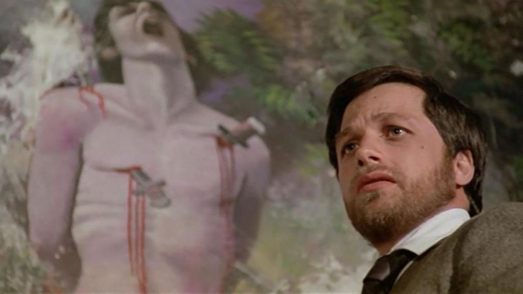 Le générique s’inscrit sur les images d’un homme suspendu que l’on torture et poignarde. Puis l’histoire débute et, d’entrée, Avati l’entoure de détails étranges. D’abord avec cet homme, le héros (joué par Lino Capolicchio), dont on apprend qu’il restaure des fresques, et qui débarque d’un bac — sur le Pô, donc — au milieu de nulle part, attendu par un nain et son chauffeur. On ne s’étonnera pas d’apprendre que la vocation d’Avati est née de la vision de 8 1/2 de Fellini, d’où ces personnages quelque peu baroques — tel encore ce jeune homme qui sert d’enfant de chœur — qui peuplent le récit. « J’ai compris, commente-t-il dans le supplément, que le cinéma pouvait être autre. »