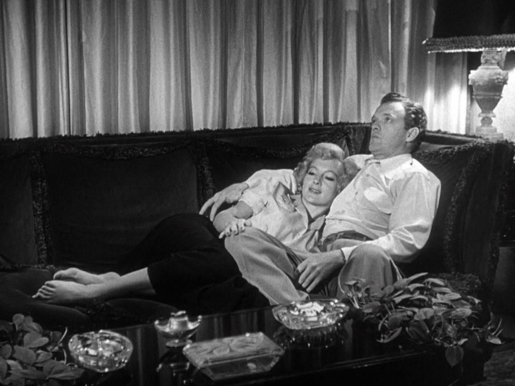 Qu’est-ce donc que Le Rôdeur, sinon une Amérique pauvre qui scrute par la fenêtre le rêve américain ? Rapidement, la femme épiée (Evelyn Keyes), qui est mariée à un animateur de radio et vit dans une belle maison, va faire la connaissance du flic venu à la rescousse (Van Heflin), un type qui a grandi dans les bas quartiers, rêvait d’une carrière glorieuse de basketteur qu’il n’a pu mener, faute d’argent, et qui s’est retrouvé policier à circuler dans les rues la nuit.