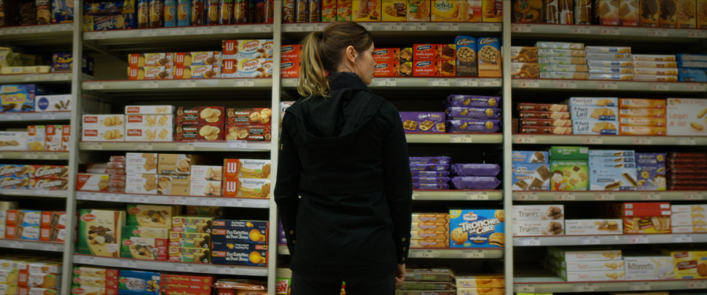 Dans le premier, trois maîtresses en maillot (Nicole Ferroni, Ophelia Kolb et Roxane Bret) font cours à des enfants eux aussi en maillots dans une école surchauffée de notre futur proche. Et puisque dans 2030, il est question de dérèglement climatique et de nuages nucléaires, on adorera également Binge Box. La caméra reste sur un gamin qui zappe les diverses chaînes de la télé, de laquelle sortent quantité de voix — on en reconnaît certaines —, discourant sur le climat. Dans le même ordre d’idée, Plastic Shopper nous présente une étudiante (Mona Grill) qui décrit divers produits cueillis dans les rayons d’un supermarché. Tous sont emballés et suremballés dans du plastique.