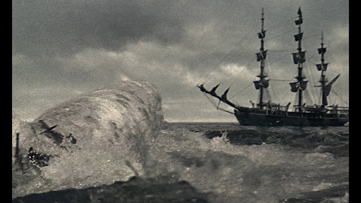 Reste, en 1956, la question des effets spéciaux. Il faut reconnaître que John Huston s’en sort très bien. Autant pour la tempête que pour les apparitions du cétacé, tout est crédible et les transparences et autres maquettes — souvent le fléau des films de cette époque — fonctionnent ici sans que ce soit gênant (comme les transparences peuvent l’être chez Hitchcock, par exemple).