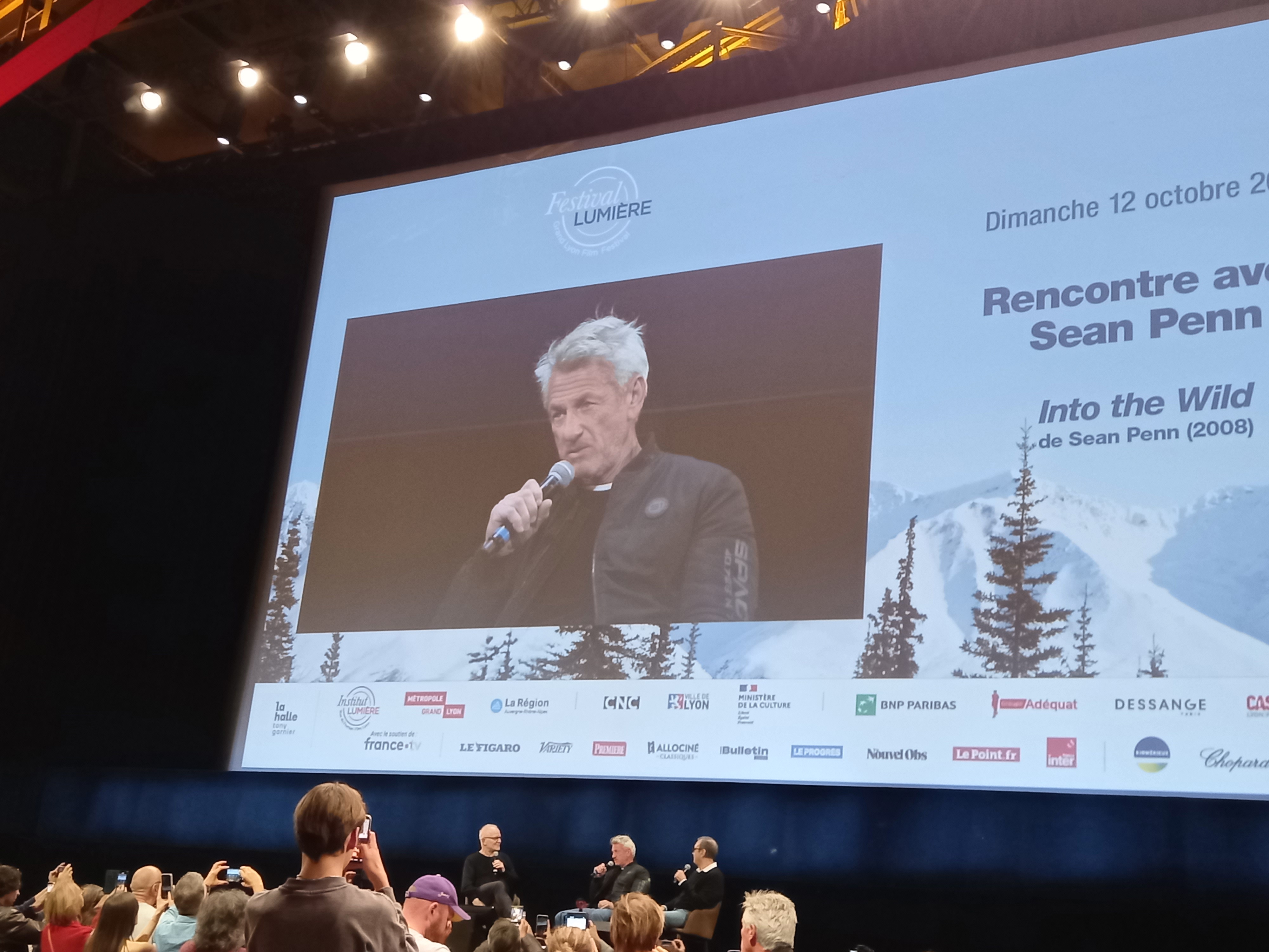 Le lendemain 12 octobre, Sean Penn était à nouveau sur la scène de la halle pour présenter son magnifique Into the Wild, qu’il réalisa en 2007. Interrogé par Thierry Frémaux et traduit par Didier Allouch, il aborda plusieurs périodes de sa carrière. Comme celle où, raconte-t-il, « pendant dix ans, j’ai souffert d’une double cataracte sans le savoir. On m’a opéré et ça a été un nouveau monde. Je me suis mis devant un miroir et me suis dit : la vache, qu’est-ce qui m’est arrivé ? »