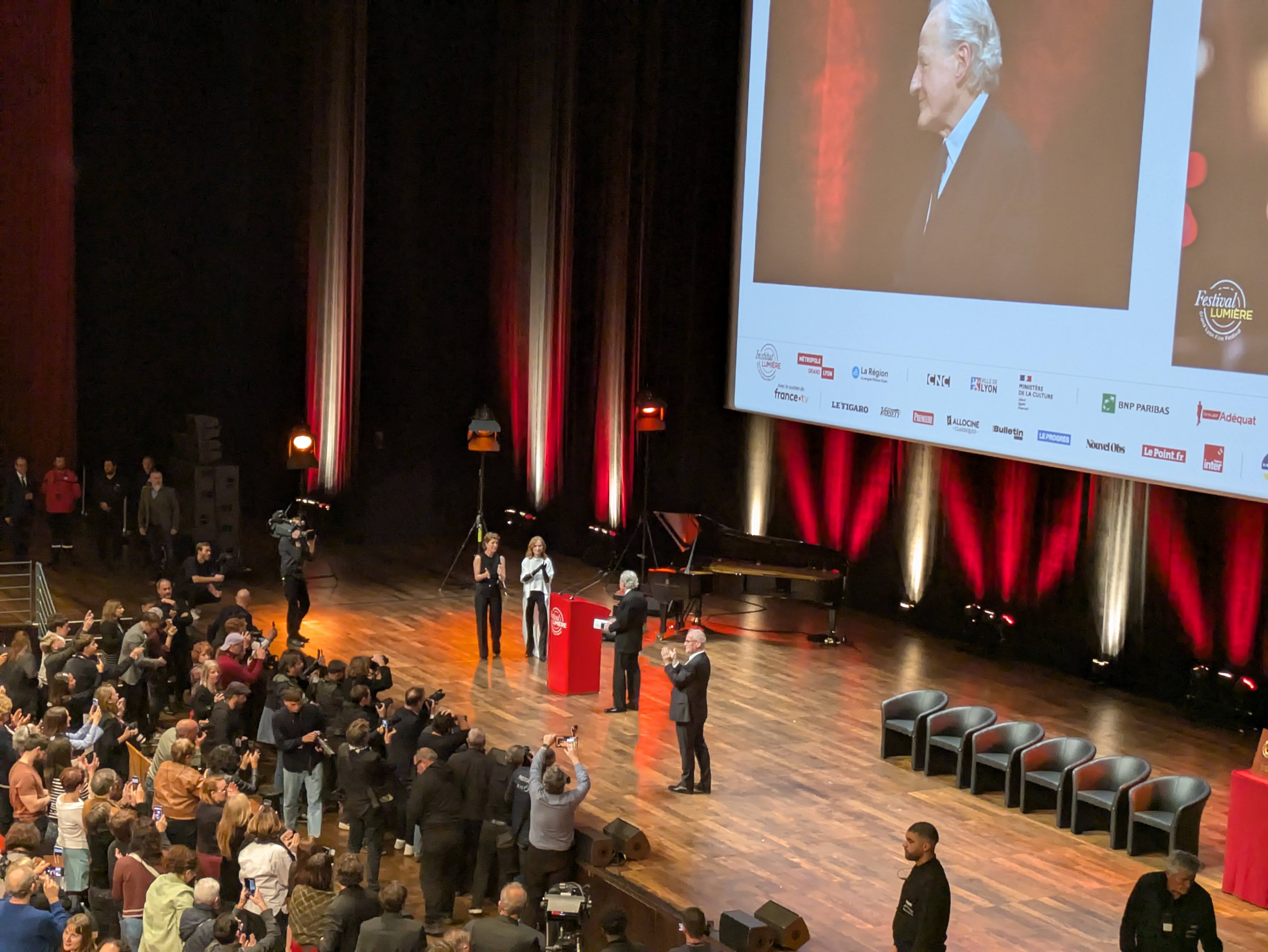 Alors que, ce 17 octobre, le festival Lumière de Lyon n’est pas encore tout à fait terminé, son organisateur, Thierry Frémaux, annonce déjà le chiffre de 150 000 spectateurs en une semaine. Ce soir-là, le prix Lumière doit être remis au cinéaste américain Michael Mann et Isabelle Huppert, précédente récipiendaire, a tenu à le lui remettre.