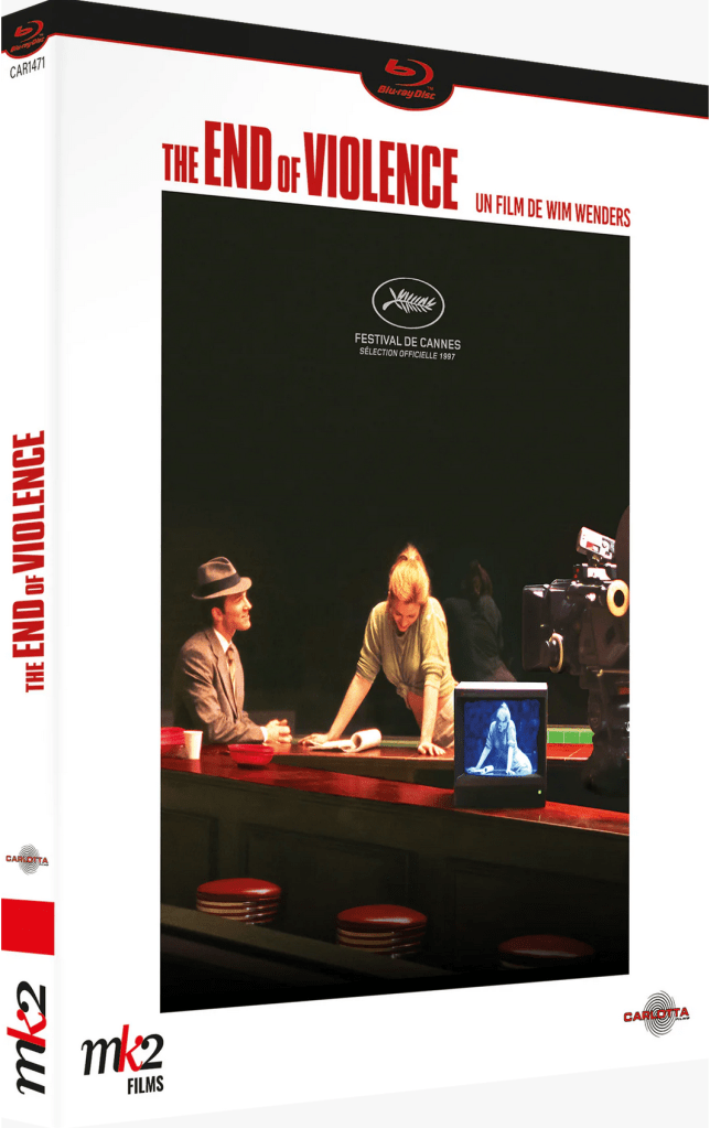 À propos de The End of Violence, Samuel Blumenfeld avait, dans Le Monde, conspué « le combat d’arrière-garde » mené par Wenders au sujet des rapports violence/cinéma. Dans ce film, la cascadeuse jouée par Traci Lind ne cesse de se questionner sur la violence. Plutôt que de lier directement les images créées au cinéma à la violence urbaine, Wenders dit que les écrans ne l’arrêtent pas. En tout cas pas ceux de surveillance. Et puisque le cinéma est toujours au cœur de ses références, il met en scène deux kidnappeurs bavards et passablement crétins (superbes Pruitt Taylor Vince et John Diehl), qui renvoient directement aux couples de tueurs vus chez Tarantino (Pulp Fiction) ou les frères Coen (Fargo). Peut-être prenant tous pour origine Lee Marvin et Clu Gulager dans À bout portant (1964), encore que ces deux-là soient nettement moins stupides.