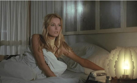 La Tarentule reprend immédiatement les codes du giallo. De l’assassin, on ne verra que les mains et, ici, elles sont dérangeantes car elles portent des gants de latex qui donnent l’impression qu’elles appartiennent à un mannequin de cire. Autre élément essentiel, l’arme blanche utilisée pour les meurtres qui, avec La Tarentule, s’accompagne d’une longue aiguille effilée servant à endormir les victimes pour qu’elles soient conscientes de leur propre mort. Ne l’oublions pas, le sadisme est l’un des paramètres du giallo. Avec l’érotisme, qui n’est pas absent du scénario.