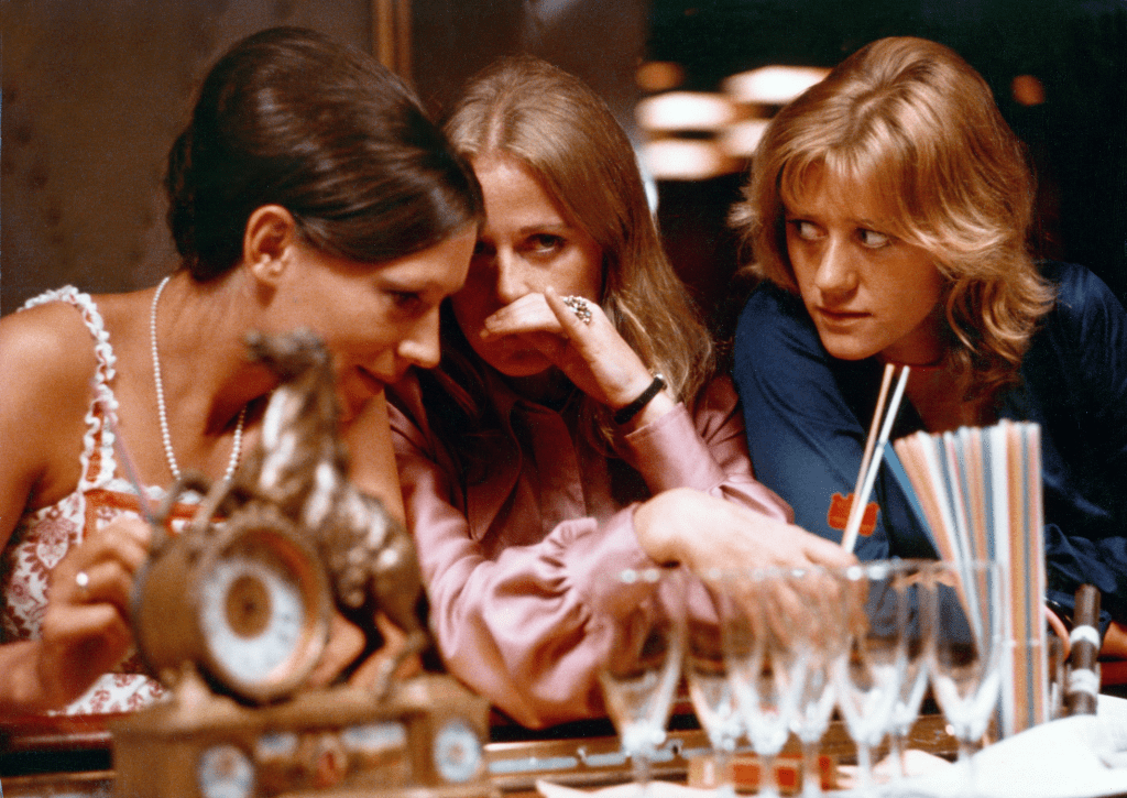 Née à Oslo en 1940, la cinéaste a une carrière qui s’étend de 1967 à 2005. Son film le plus connu, Hustruer (1975, Wives), est en quelque sorte sa réponse au Husbands de Cassavetes, sorti en 1970. Dans le film américain, trois copains (Ben Gazzara, John Cassavetes et Peter Falk) se retrouvaient après un enterrement et se mettaient à picoler, errer dans le métro puis décider de s’envoler vers Londres. Avec Wives, Anja Breien montre que les femmes aussi peuvent vivre le même genre de dérive existentielle. Trois amies d’enfance, Mie (Anne Marie Ottersen), Kaja, qui est enceinte (Katja Medbøe) et Heidrun (Frøydis Armand), se sont perdues de vue et retrouvent toute leur classe à l’occasion d’une fête organisée pour leur ancienne prof. Elles décident, avant de rentrer chez elles, de traîner un peu ensemble.