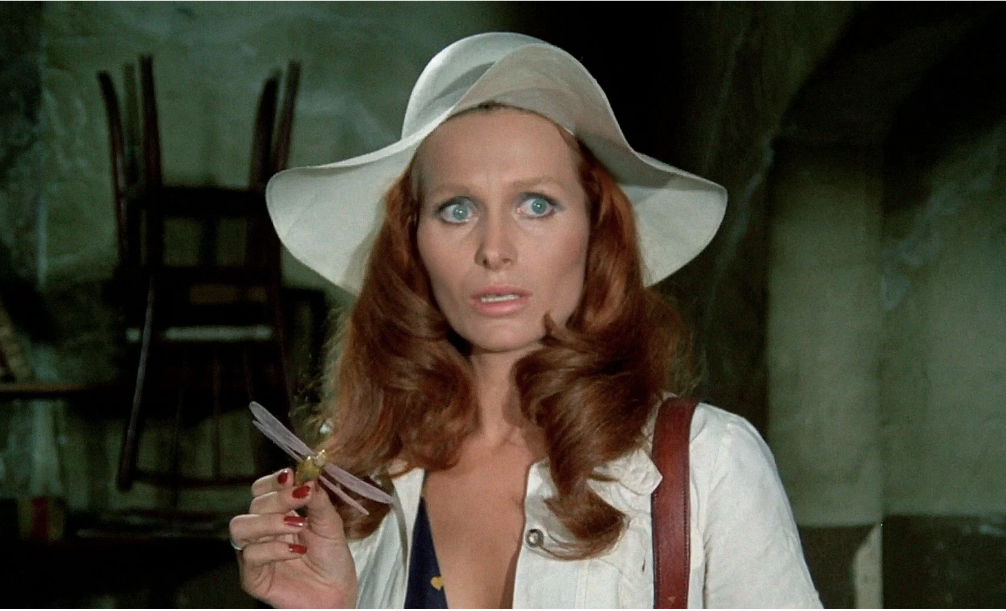 Avec Une libellule pour chaque mort, nous sommes donc bien en présence d’un paella giallo, avec des meurtres commis par un mystérieux agresseur et une enquête menée par un commissaire un peu lourdaud, un éternel cigare coincé entre les lèvres. Il est incarné par Paul Naschy, qui a acquis ses titres de gloire dans la peau du loup-garou Waldemar Daninsky — une douzaine de films dont plusieurs réalisés par Leon Klimovsky. Naschy qui, sous son véritable patronyme de Jacinto Molina, co-signe avec Ricardo Muñoz Suay le scénario d’Une libellule pour chaque mort. Et, puisque les Espagnols suivent eux aussi fidèlement les modes, on ne s’étonnera pas de voir apparaître dans le titre des libellules après les mouches de Dario Argento, la tarentule de Paolo Cavara et le scorpion de Sergio Martino. Les libellules sont celles que le coupable dépose sur chaque cadavre.